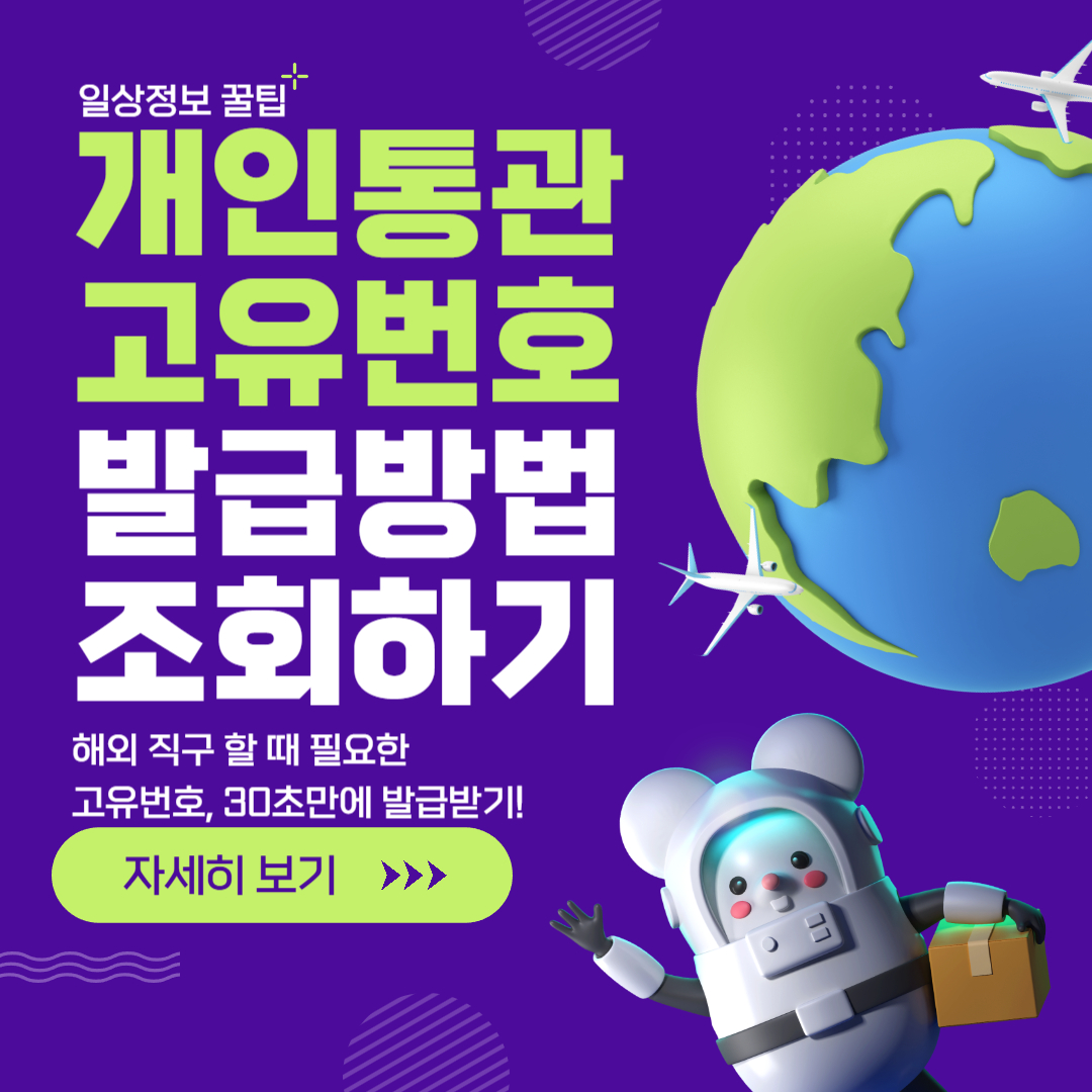 예전에는 사용빈도가 낮았지만 해외직구가 활성화되기 시작하면서 쇼핑몰에 개인통관고유번호를 입력하라는 것을 본 적이 있을 겁니다. 저는 일일이 기억하지 못해 조회 화면을 캡쳐해서 핸드폰 사진 폴더에 별도로 저장해 놓고 있습니다. 개인통관고유번호는 개인정보 유출을 방지하기 위하여 해외 직구 시 활용할 수 있는 번호로, 한 번 발급해 두면 영구적으로 사용할 수 있습니다. 오늘은 이러한 개인통관고유번호 발급방법과 조회하는 방법에 대해 알아보겠습니다.