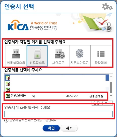 4. 인증서 비밀번호 확인 성공하게 되면 아래와 같은 화면이 뜹니다.