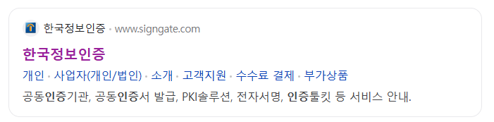 1. 인터넷 서치 화면에서 '한국정보인증' 검색 후 사이트 접속