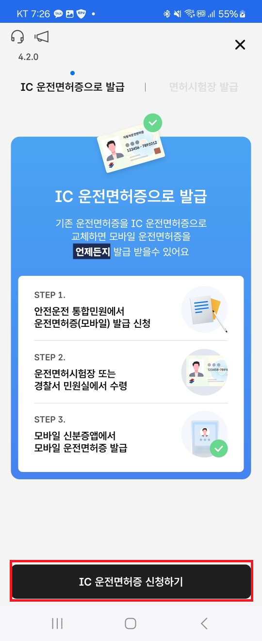 IC 운전면허증을 통한 모바일 운전면허증 발급