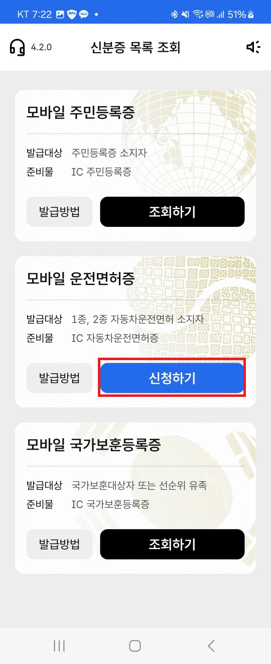 모바일 운전면허증 발급하기