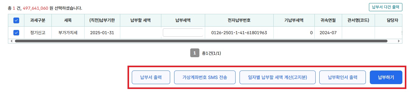 - 홈택스 로그인 ➡ 부가가치세 신고 ➡ 납부