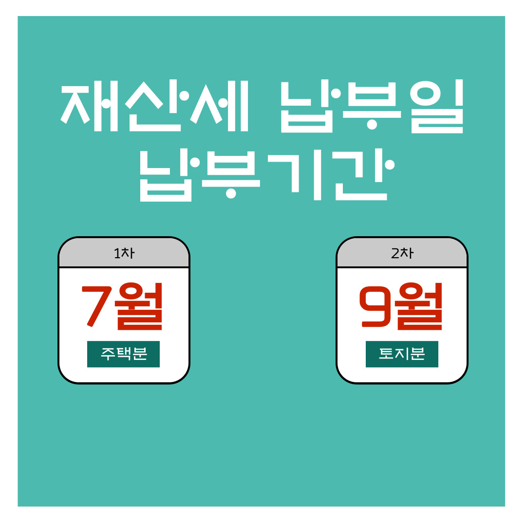 - 재산세 20만 원 초과 : 7월과 9월에 나누어 50%씩, 2회