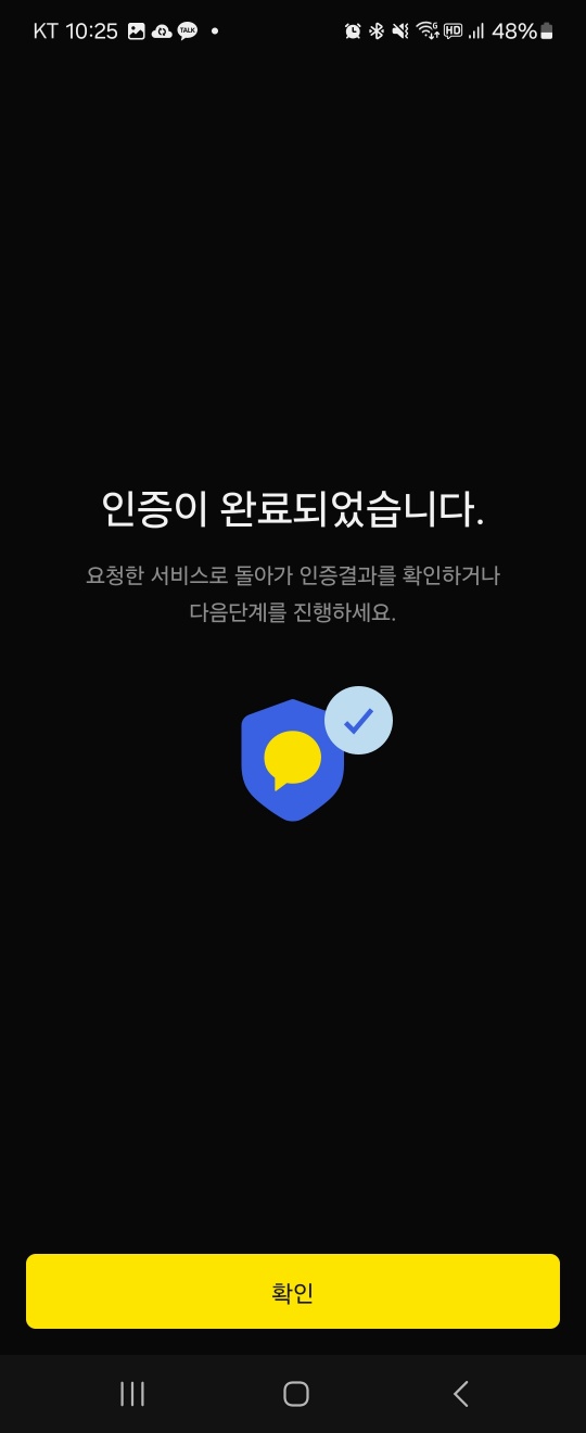 발급 요청 후 본인 인증 절차가 진행됩니다. 이 단계에서는 카카오 인증서를 사용하거나 공동 인증서를 입력해야 합니다. 인증이 완료되면 다음 단계로 이동합니다.