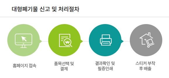 ④ 폐기물 배출 : 발급받은 스티커 또는 승인번호 기재 종이를 폐기물에 부착한 뒤 지정된 장소와 날짜에 맞춰 배출
