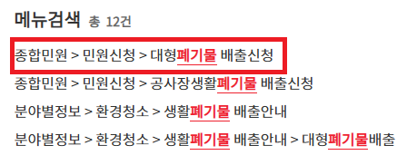 ② 해당 지자체 홈페이지 메인에 검색창에 폐기물 또는 폐기물스티커라고 적고 검색버튼 또는 엔터를 누릅니다.