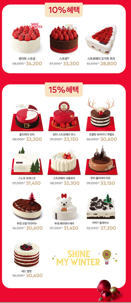 안녕하세요, 율맘 자나입니다. 벌써 24년도 얼마 남지 않았네요. 벌써 곳곳에는 캐럴이 들리고 크리스마스 장식으로 꾸며진 모습도 많이 보입니다. 예전에는 크리스마스가 좋기만 했는데 나이를 먹다 보니 크리스마스가 지나면 또 한 해가 끝나는 구나라는 생각에 슬프기도 합니다. 이번 글에서는 파리바게뜨, 투썸플레이스, 폴바셋, 스타벅스, 뚜레쥬르 2024년 크리스마스 케이크 사전예약과 픽업기간에 대해 알아보겠습니다.