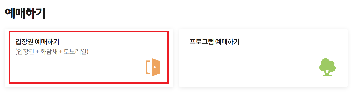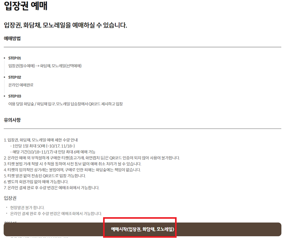 - 예매 가능 상품 : 화담숲/화담채 입장권, 모노레일 탑승권(1승강장 출발)