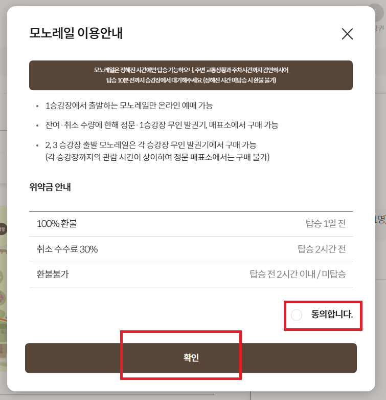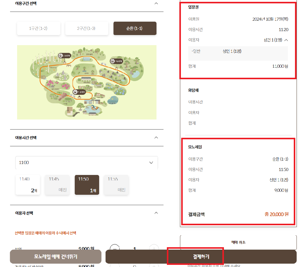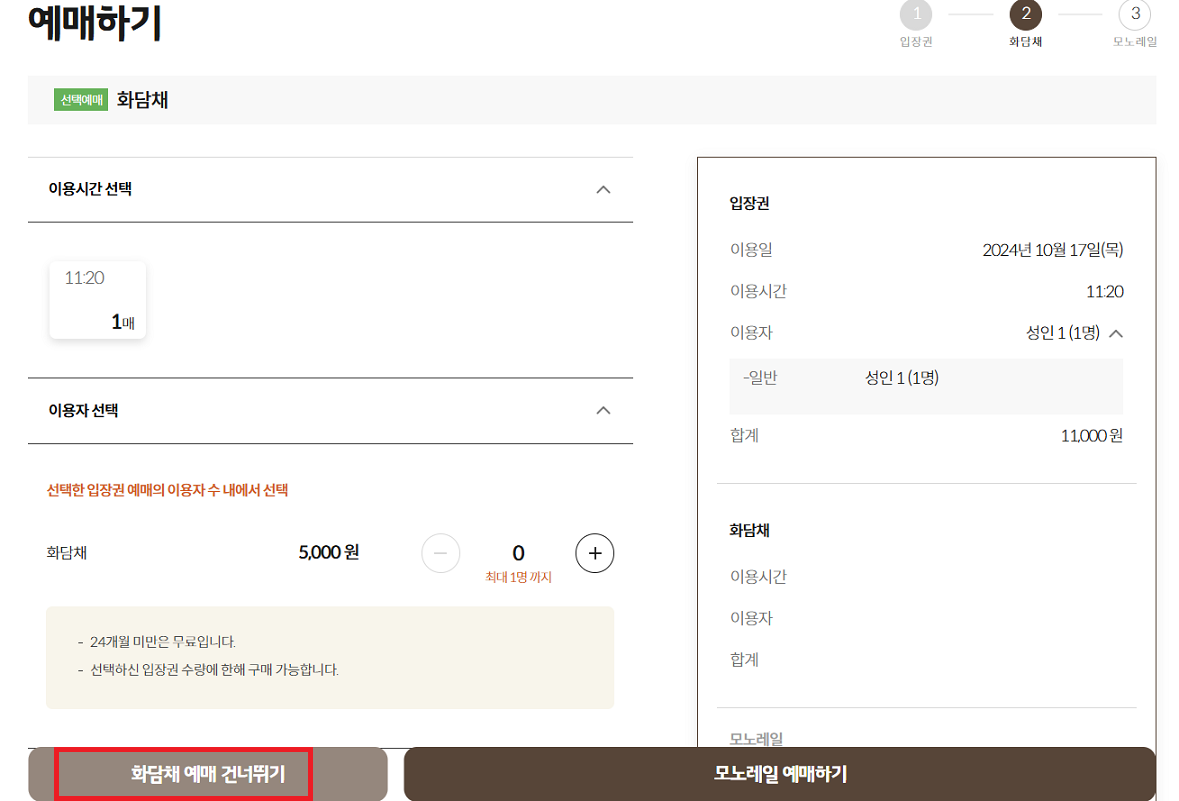 ※ 화담채 예매 건너뛰기를 누른 후 모노레일 예약으로 진입합니다.