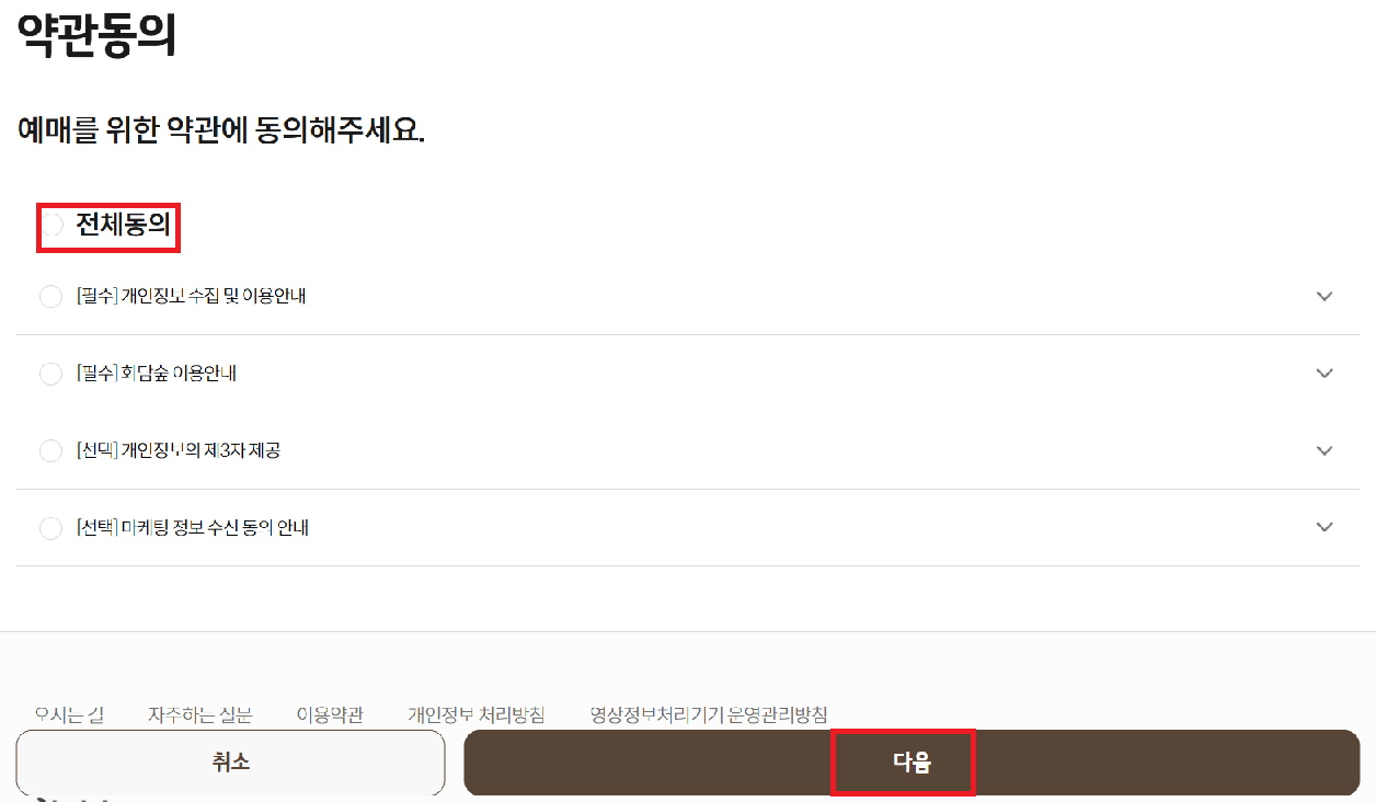 ※ 시간이 없으니 전체동의를 누르고 다음 누릅니다.