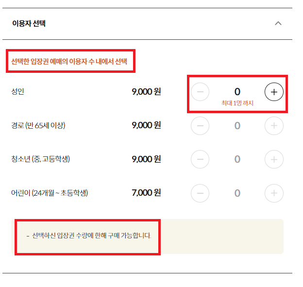 - 가을 성수기 시즌 1인 6매까지 예매 가능