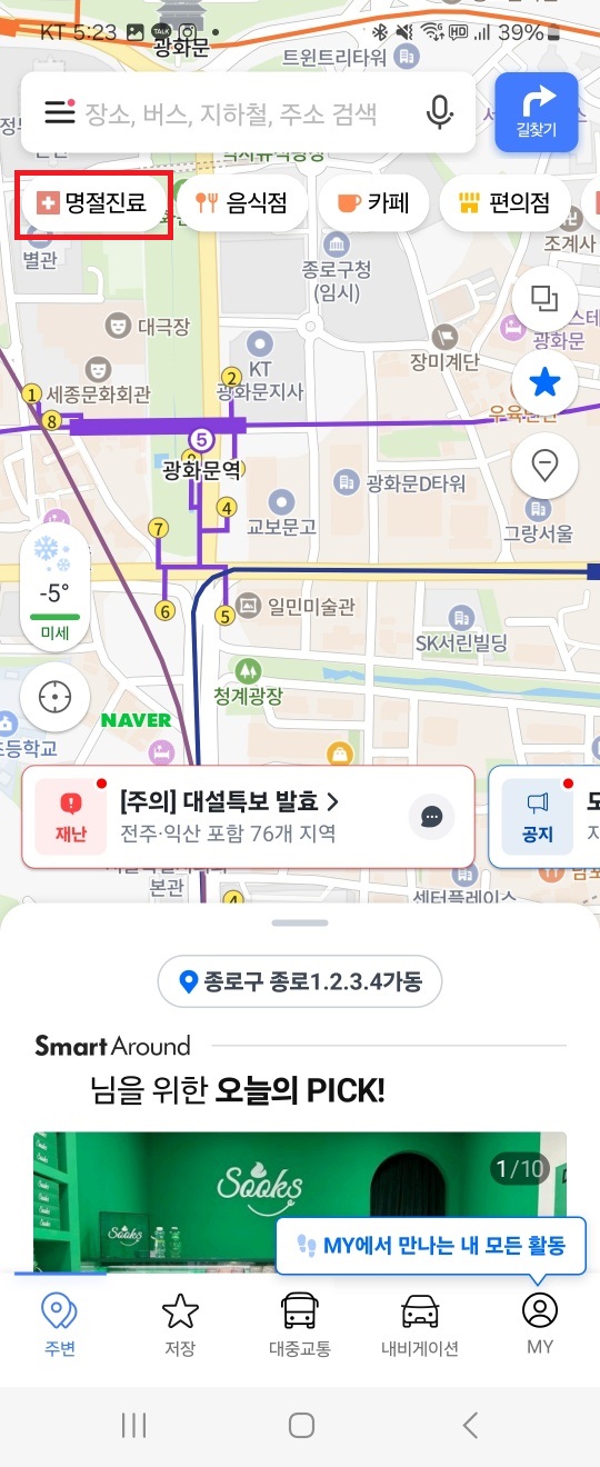 ☑ 플레이 스토어 "네이버 지도" 검색 후 다운로드 > 명절진료 탭 검색 > 갈 병의원, 약국 선택 후 길 찾기