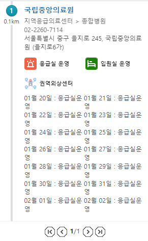 저는 예시로 가장 처음 나온 곳들을 검색 해 보았습니다. 운영 시간 보기가 어렵다면 현재운영기관에 체크해서 검색하면 현재 운영 중인 기관이 검색되어 보입니다. 저는 체크하여 검색하진 않았습니다.
